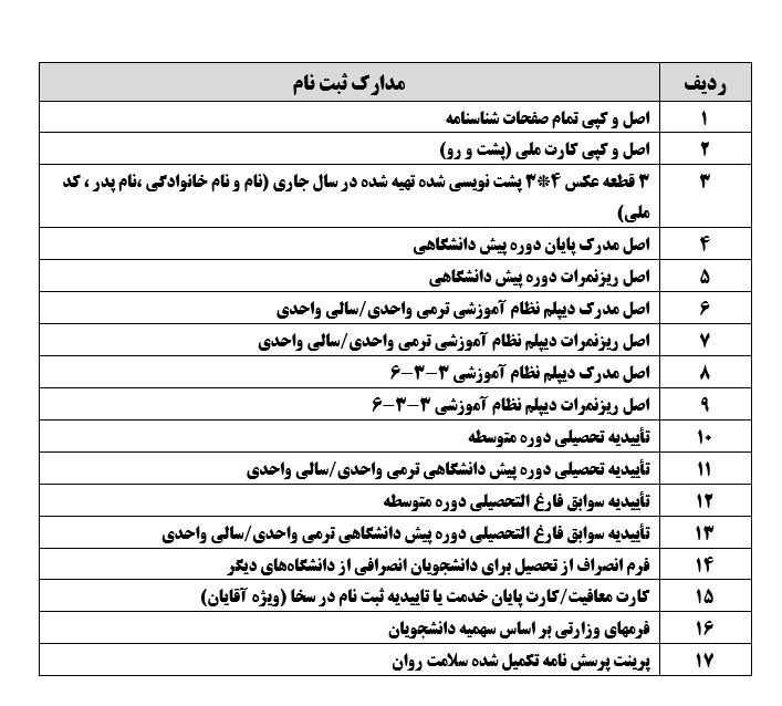 مدارک ثبت نام دانشجویان نو ورودان رشته پزشکی مقطع دکترای عمومی